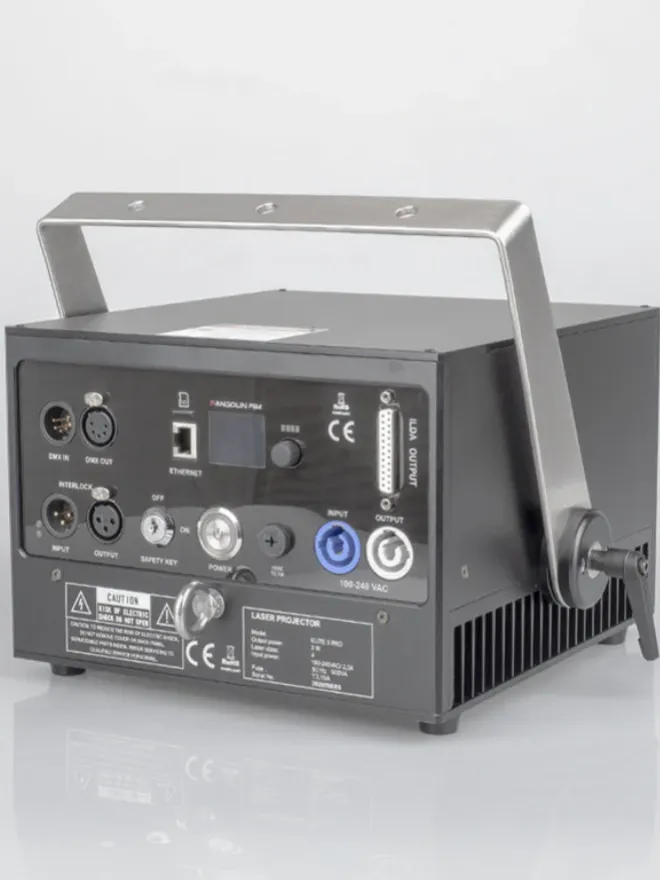 | Package Includes: | Heavy-duty flight case, laser projector, mains-power cable, 10M Ethernet signal cable, E-STOP Remote with 10M XLR cable, set of 4 safety keys, 3-pin interlock bypass plug [for the US only], USB drive with a User Manual, QC certificate. |