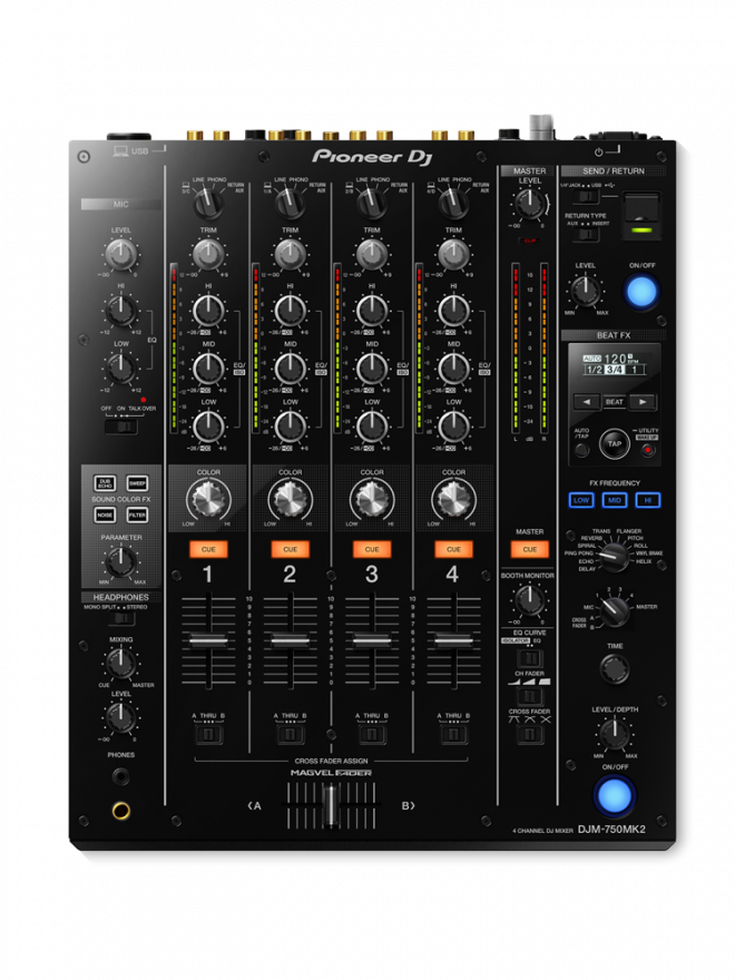 Take the step to the DJ booth seamlessly with the DJM-750MK2, a 4-channel mixer which inherits key features and design elements from the DJM-900NXS2, creating a club-style setup when combined with our professional CDJ or XDJ multi players.